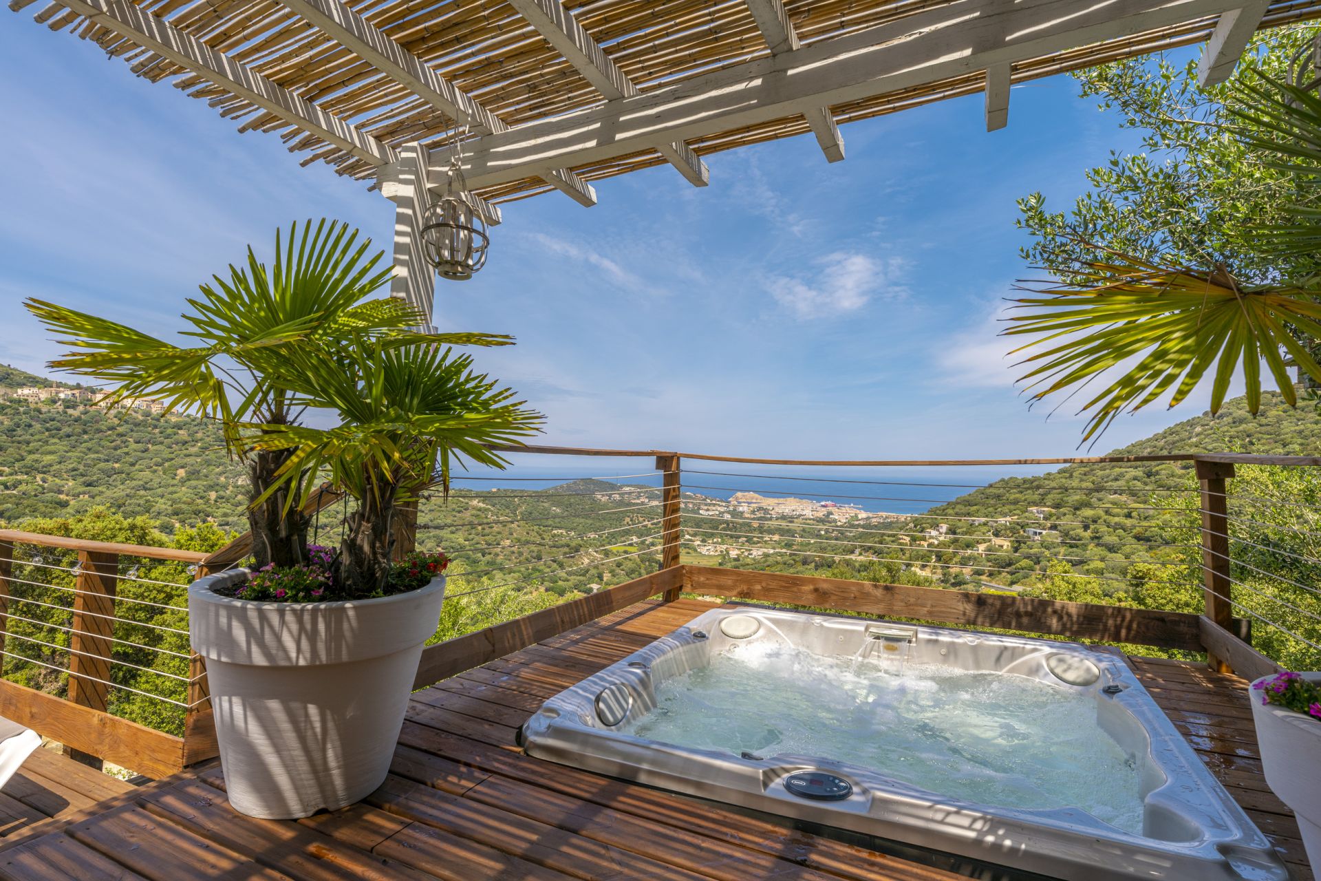 Trois villas et 17 appartements au confort luxueux se partagent un domaine de près de un hectare et demi au dessus de L’Ile Rousse, chaque villa, décorée avec beaucoup de soin, dispose de trois chambres et de trois salle de bain, un vaste séjour, une cuisine très équipée. Et pour profiter de tous les instants du bel été de Balagne, chacune est entourée de vaste terrasses et possède une piscine a débordement d’ou le regard plonge jusqu'à la mer au-delà de la nature parfumée.